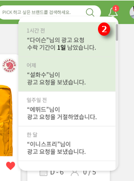 광고목록에서 등록한 브랜드